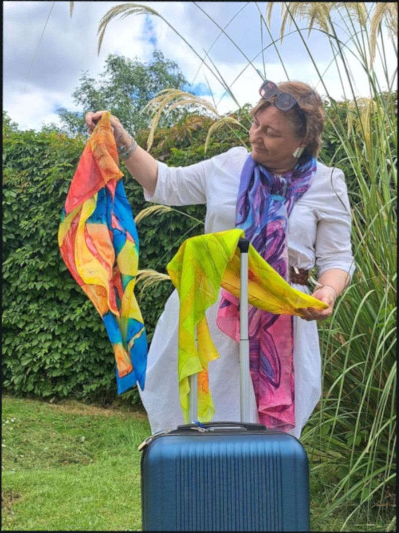 I began silk painting more than 20 years ago, learning basic skills in London with Tony Wigg (Hampstead Garden Suburb Institute and Hampstead School of Art) and later further techniques in the Netherlands with Ellen Bakker.